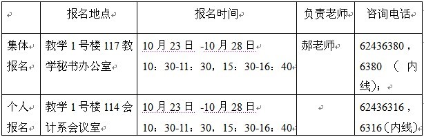 2、报名后(集体报名请班干部负责)请于11月2日当天到报名处核对报名信息并在报名表上签名确认。