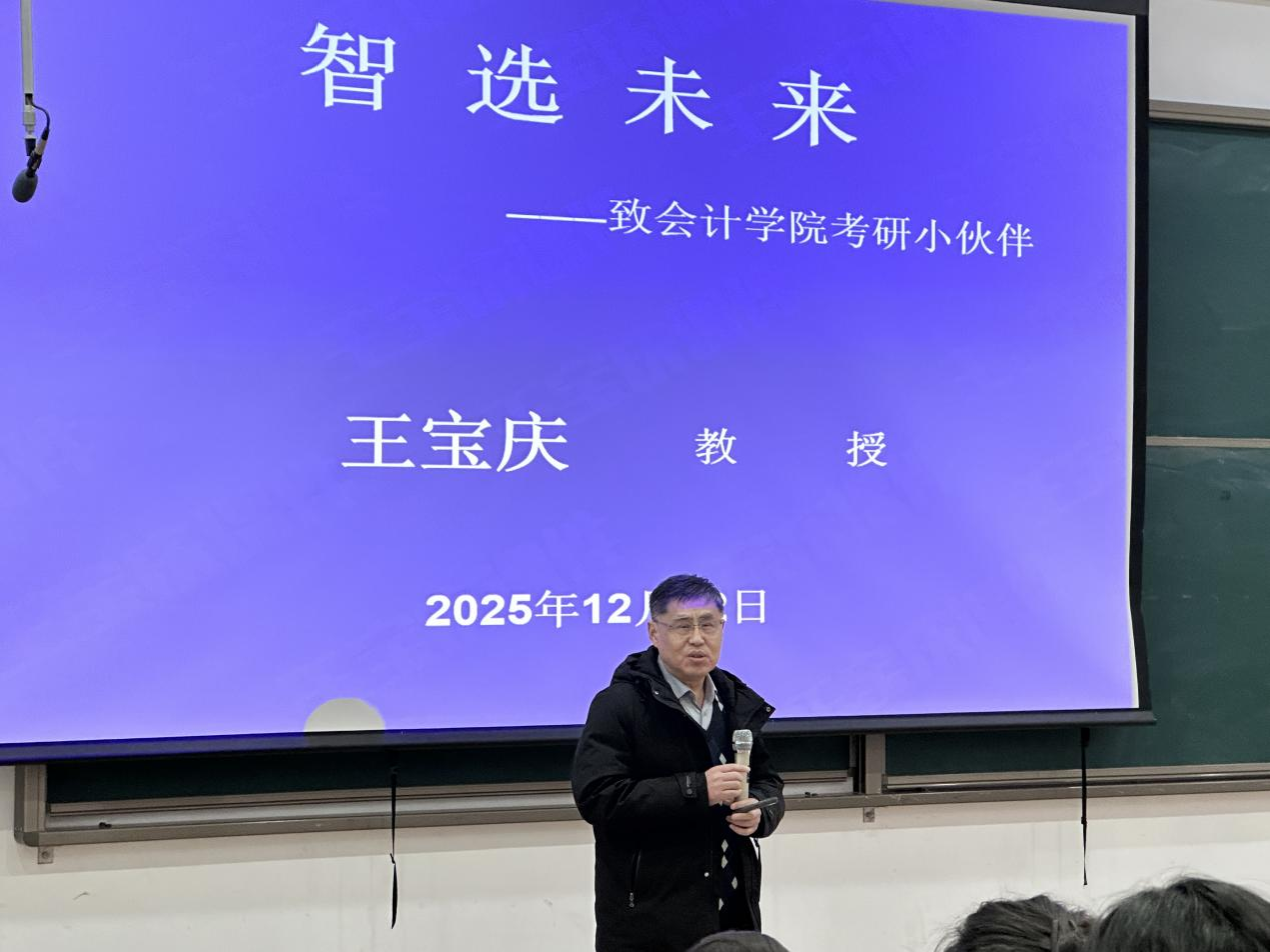 在研究生招考结束后的第二天,12月22日上午10:30,郑州升达经贸管理学院在教学四号楼118教室由院长王宝庆教授为考研学子做了题为《智选未来》的考后指导讲座。郑州升达经贸管理学院党委副书记兼团委书记陈刚主持本次讲座,学院部分教师代表一同到场听取。