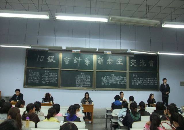 10月21日18:00,由会计系学艺部主办的2010级新老生经验交流会在教学一号楼108室精彩举行。参加此次交流会的嘉宾有会计系团委副书记马琳、学艺部部长何晓蒙及会计系优秀学生代表郭可昕、贾海、邢欢、宋坤坤、袁昊等。交流会主要针对大一新生在大学里的学习、生活、工作等方面的困惑和问题进行交流和解答。