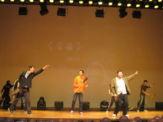晚会在“黑蚂蚁”乐队充满激情的摇滚歌声中拉开了帷幕,一个个精彩纷呈的节目令人目不暇接:由“精武门”带来的街舞活力四射,让人着实感受到了街舞的非凡魅力;相声《咱爷爷》、《你要折腾》诙谐幽默,令人捧腹大笑;由会计系黄楚睿同学带来的魔术令人大开眼界,使轻松快乐的现场弥漫着几分神秘的气息;恶搞版的小品《五朵金花》、《非常打扰》、《搞好英语》、《学舞》演员表演到位,以讽刺的表演形式激励着广大同学刻苦学习,珍惜大学四年的美好时光,树立正确的价值观、恋爱观;歌曲《你是我的眼》、《one night in 北京》、《爱的代价》、《单面镜》那深情忘我的歌声挑动了在场所有观众的心弦;由多才多艺的国贸系辅导员带来的现代舞《deeply》更是展现了辅导员老师们的靓丽风采;民族舞《俏花旦》舞姿优美曼妙,展现着我院舞坛中坚力量的风采;由会计系带来的服装表演超凡脱俗,透漏着高贵迷人的气息。最后,由企管系同学带着对创办人、对母校、对领导老师的感恩之情表演的手语歌曲《感恩的心》将整场晚会的气氛推向了高潮。晚会在雷鸣般的阵阵掌声中圆满落下帷幕。