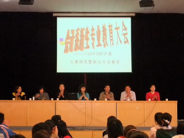 为帮助2010级405名新生快速了解升达、了解自己所学专业,适应大学生活,会计系于9月30日上午9:00在龙湖报告厅举行了2010级本科新生入学教育大会,会计系党总支书记朱建良、系主任张欣、党总支副书记张红阳、教学秘书郝沁慧、优秀教师代表邵葵和吕永霞老师及新生班辅导员共同出席了大会,会议由行政秘书郑晶主持。