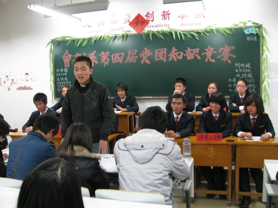 11月25日,由会计系团委、政论部联合主办的主题为“永远跟党走,争做新一代”的会计系第四届党团知识大赛预赛在商管楼115顺利进行。