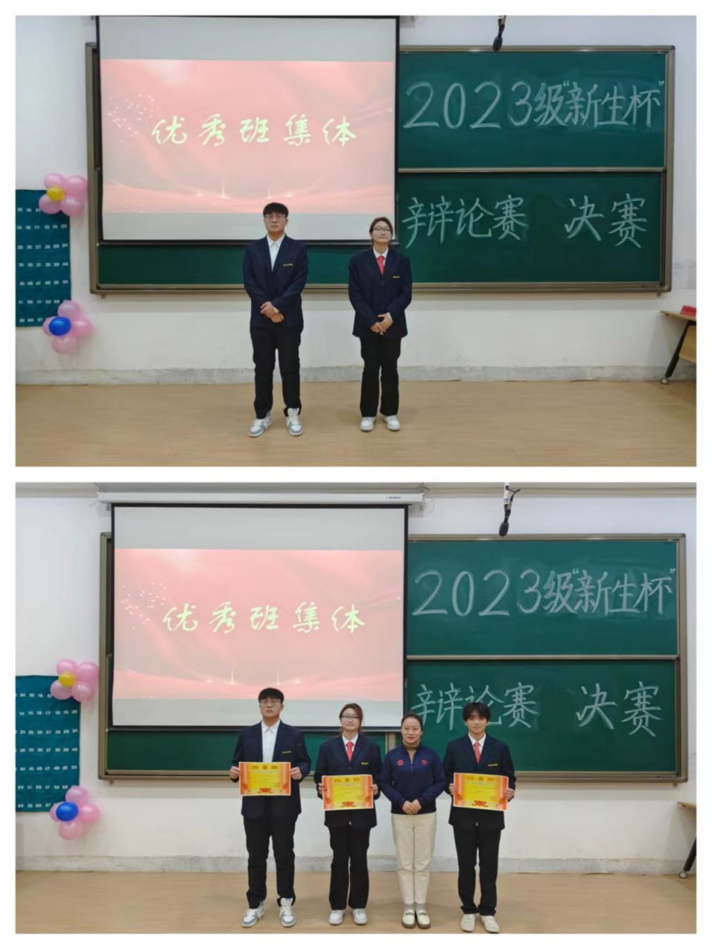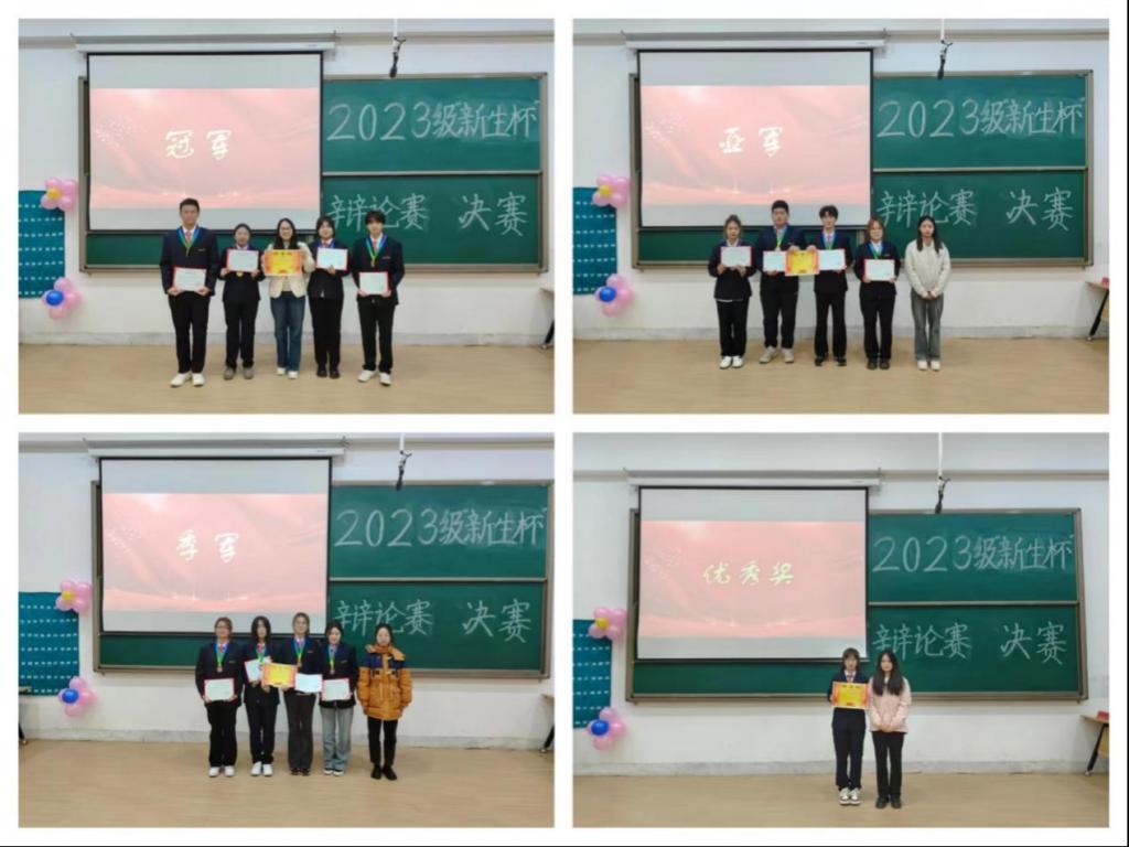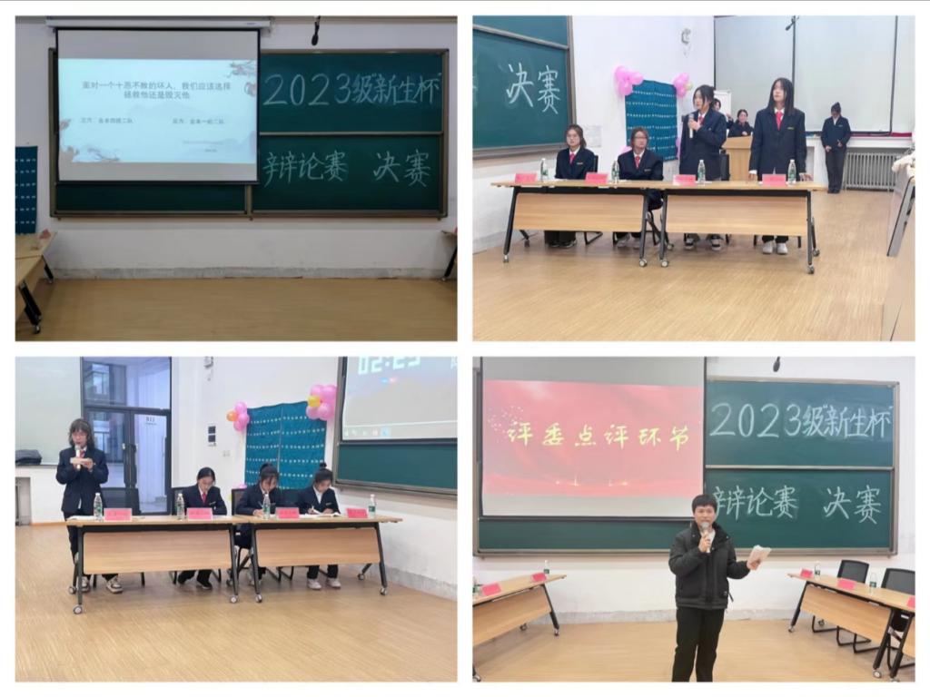 首先,22级辩论队队长周晓梦介绍了参加比赛的班级和本场比赛辩题。然后进入辩论环节,双方辩手你来我往、侃侃而谈,场下观众激情澎湃、掌声连连响起。接着,21级辩论队队长张芷宁和副队长刘博文对今晚的比赛进行了简单的分析与评价,辩论队队长周晓梦宣布比赛结果并评出最佳辩手。最后,田央老师、29届团委副书记朱凯梦、学生会主席申含、社联理事长王赛迪分别对荣获冠军、亚军、季军、优秀奖的队伍进行了颁奖,胡翔宇老师为荣获道德风尚奖、精神文明奖和最佳组织奖的队伍进行了颁奖。