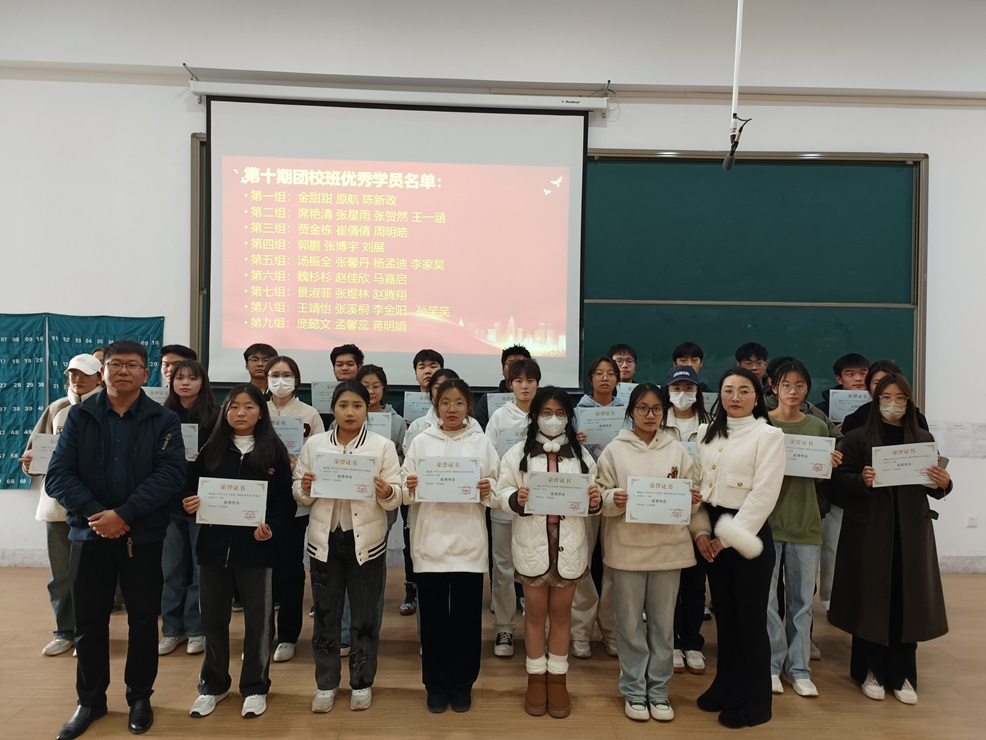 首先,由团校班校长陈刚老师进行致辞。陈刚老师介绍了团校班的情况,对团校班老师及全体学员的努力和付出给予了肯定,希望同学们向党组织靠拢,树立远大目标。接着,团校班副校长胡淑娟老师宣读了第十期团校班优秀学员名单。然后,由第十期团校班优秀学员汤振全作为学员代表发言。最后,团校班举办了茶话会活动,活动上学员们互相交流心得,分享感悟,为团课的结束画上圆满的句号。