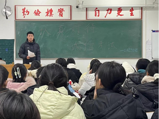 学问之道,来不得半点虚伪和欺骗。在主题班会上,通过宣读考风考纪相关管理规定,以及列举考试违纪带来不良后果的案例,让学生普遍认识到考试不仅考学生的知识,也考学生的品德,诚信考试,才能诚信做人,只有诚信考试才是对所有人最大的公平。