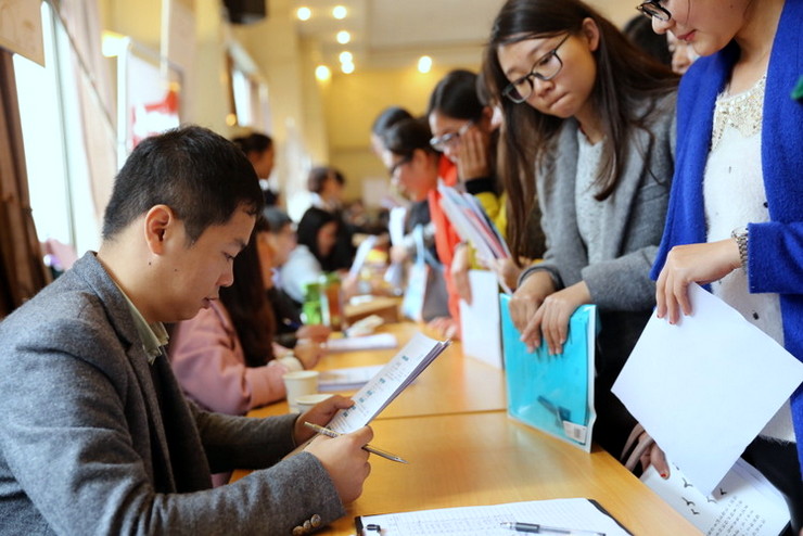 虽然天空下着大雨,困难重重,但紧张严谨的氛围,井然有序的会场给了毕业生提供了展现自我的空间和舞台。他们朝气蓬勃的面孔,自信满满的笑容,从容不迫的神情感染了用人单位,在涉及就业岗位和奠定就业基础方面与她们展开了充分的讨论和沟通。同时,应聘者们优秀的表现也给企业招聘人员留下了深刻的印象,桌子上那厚厚的简历表是毕业生们对未来的希望和憧憬。