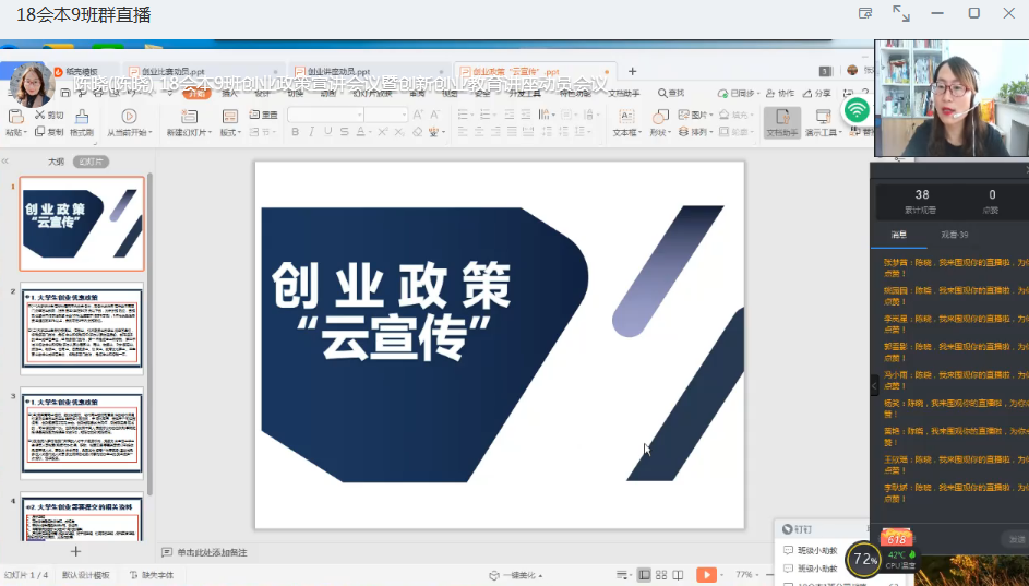 郑州升达经贸管理学院为深入贯彻落实河南省教育厅《关于在全省大中专学校开展毕业生就业创业政策宣传周的通知》(以下简称《通知》)要求,郑州升达经贸管理学院在学生疫情居家学习的情况下,积极展开创新创业政策宣传会议,2020年5月8日通过钉钉线上直播方式对学生面对面展开宣传和讲解,期待能够对学生创新创业知识的困惑进行解答,对学生创新创业政策进行进一步的了解。