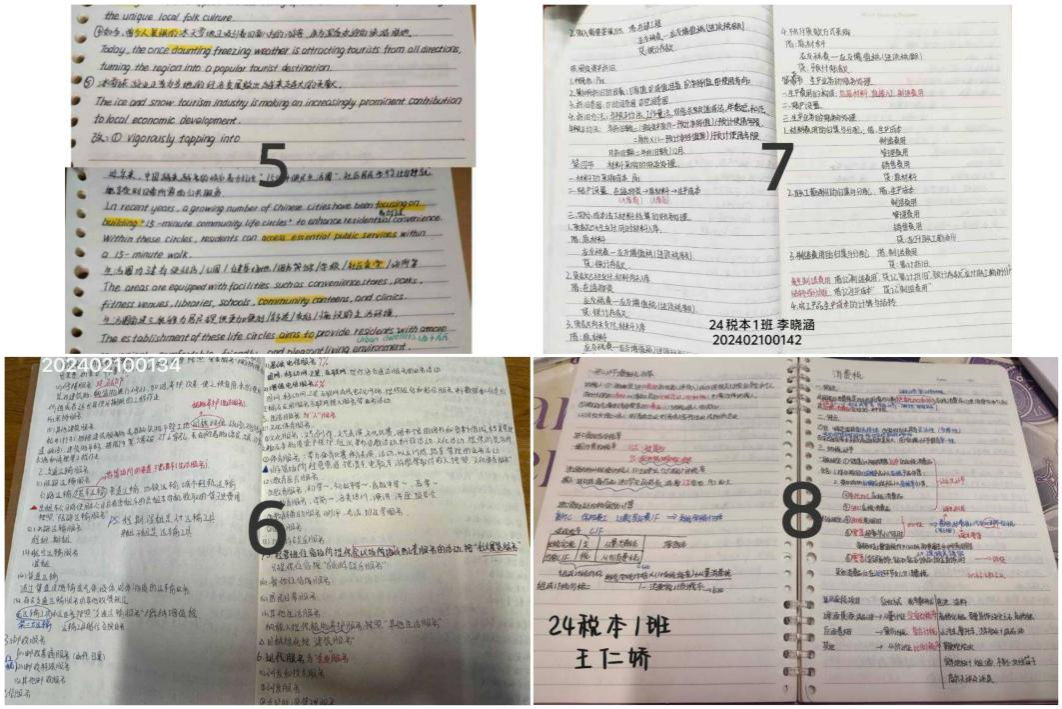 本次评选以“规范、清晰、实用、创新”为核心标准,涵盖课堂笔记、读书笔记、思维导图等类型。参赛笔记中,既有对税收学专业知识点的系统梳理与重难点标注,也有思维导图、色彩分区等呈现形式。部分笔记逻辑严谨,将复杂税收政策拆解为清晰框架;部分图文并茂,让专业知识更鲜活;还有的标注详尽、心得深刻,尽显学子主动思考、融会贯通的学习态度,充分彰显新时代青年勤学善思的精神风貌。