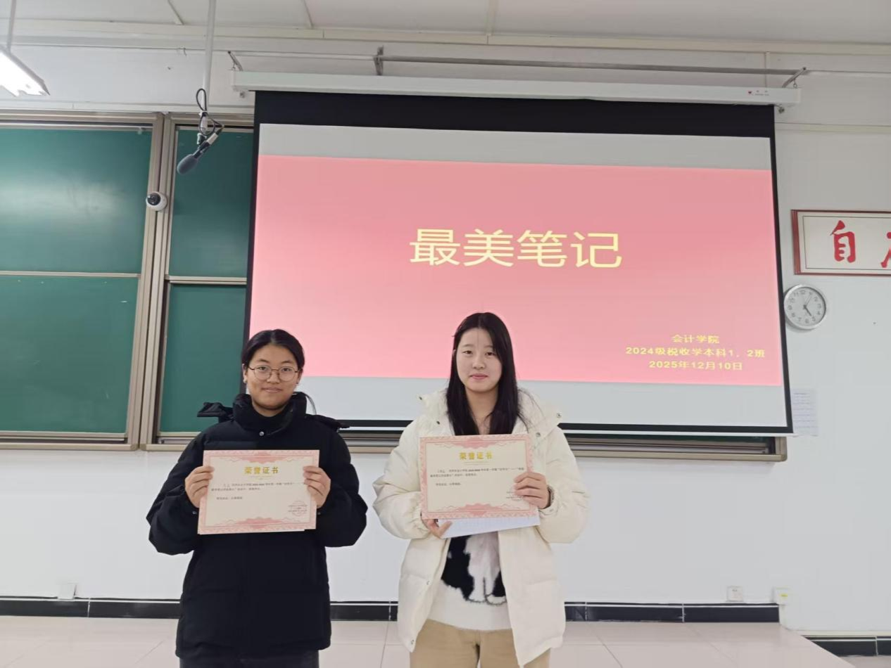 为厚植“勤学、善思、笃行”的优良学风,让“好学月”主题教育活动的氛围浸润人心,2025年12月10日,郑州升达经贸管理学院2024级税收学本科1、2班联合举办“班级最美笔记”评选活动。活动得到两班学生积极响应,经个人报名、班级评审,最终评选出2份“班级最美笔记”。